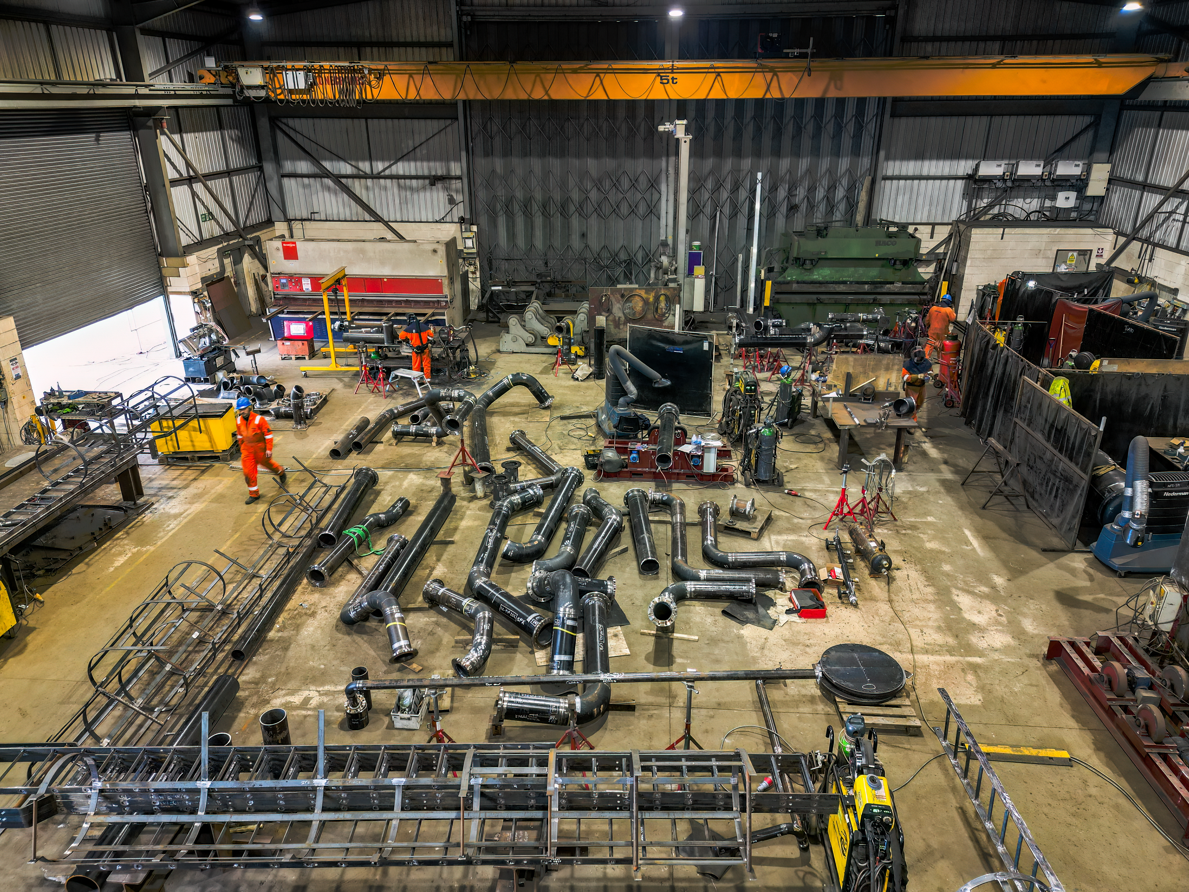 This infrastructure allows efficient receipt of materials and delivery of complex pipework and structural fabrication projects, including oversized or offshore-returned components.